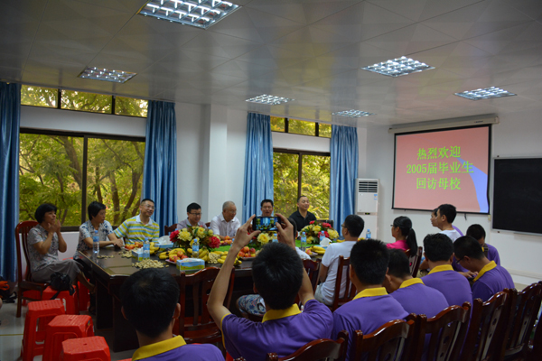 图片说明:7月18日下午,数学与统计学院90余名2005届数学与应用数学专业校友回校聚会,共庆毕业10周年。该学院党政班子成员及部分原任课教师参加座谈会,党委书记付本路对校友回访母校表示热烈欢迎,并介绍了学院的发展历程和师资力量、学科建设、学生培养等情况,希望校友们常回来看看,为学院发展献计献策。院长令锋在聚餐宴会上致欢迎词,希望校友们一如既往地关心、支持母校和学院的发展,也希望校友们努力工作,为社会多做贡献,为母校和学院争光。(数学学院)