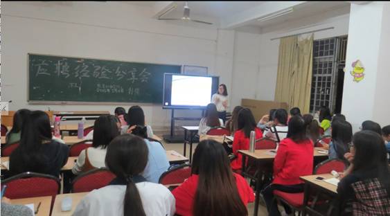 2016年 3月4日,教育学院邀请了15届校友杜惠端、潘媚在鲁迅楼演示室开展了教师应聘经验分享会。辅导员赵书栋以及各年级的小教、初教班近百名同学出席了本次分享会。