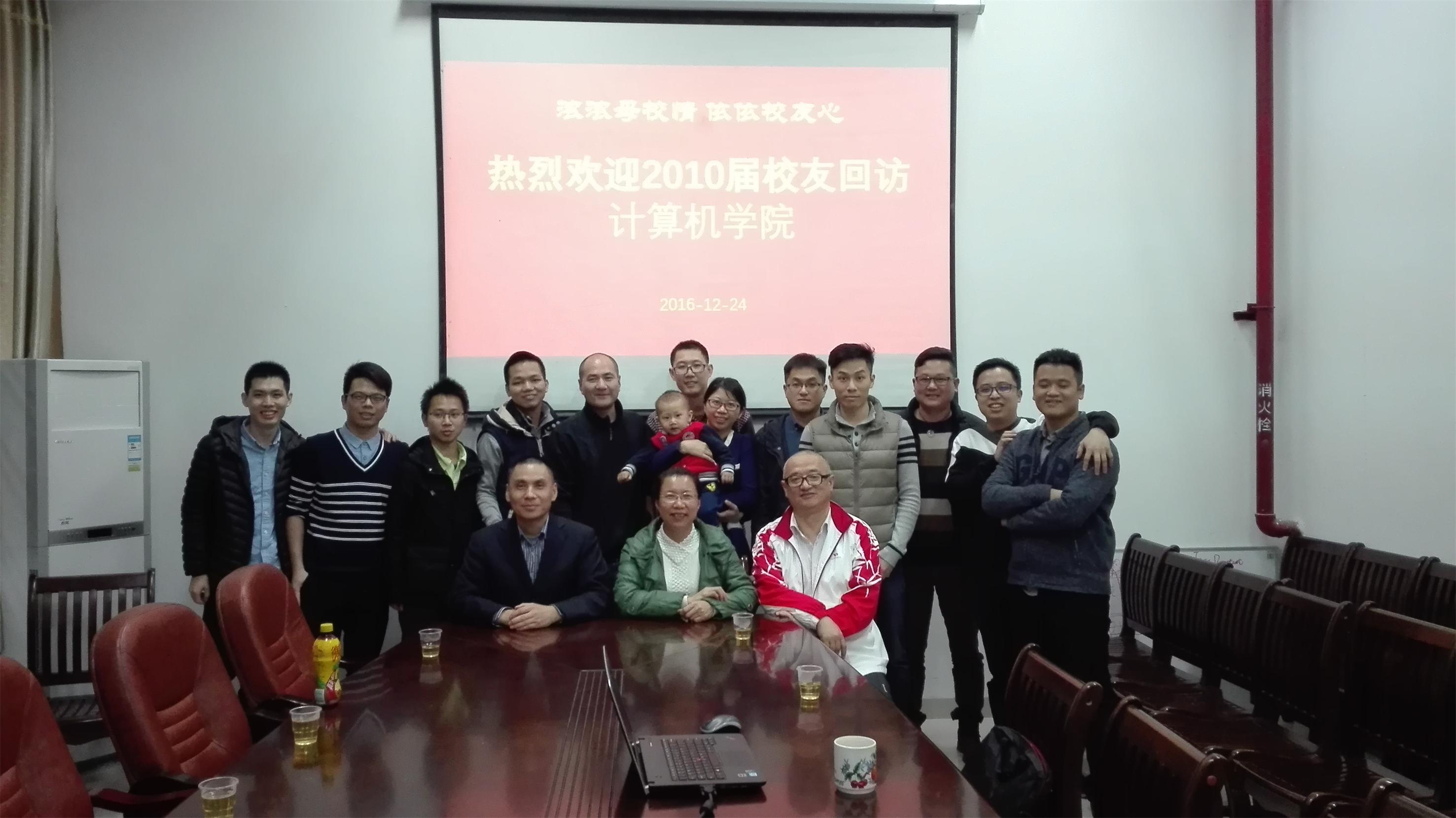 (计算机学院通讯员)12月24日下午,计算机院、软件学院2010届软件工程专业校友返校交流会在软件大楼104室举行,学院党委副书记颜春萍,副院长胡忠望,原2010届软件工程班班主任朱俊岭以及部分老师参加了这次交流会。